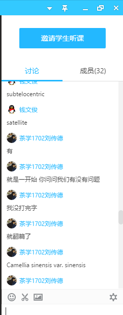 本课程主要以PPT展示加同声直播为主(图3-4),在授课中对一些重难点通过在PPT上标注或是在讨论区介绍的形式向大家讲解。同时也会在线上随机提问,通过讨论区让大家写出答案,供大家一起讨论(图5),一方面加深大家的记忆,另一方面是对学生学习过程进行监督。另外,我也会穿插一些视频或生活中的素材来形象化一些抽象的知识点。