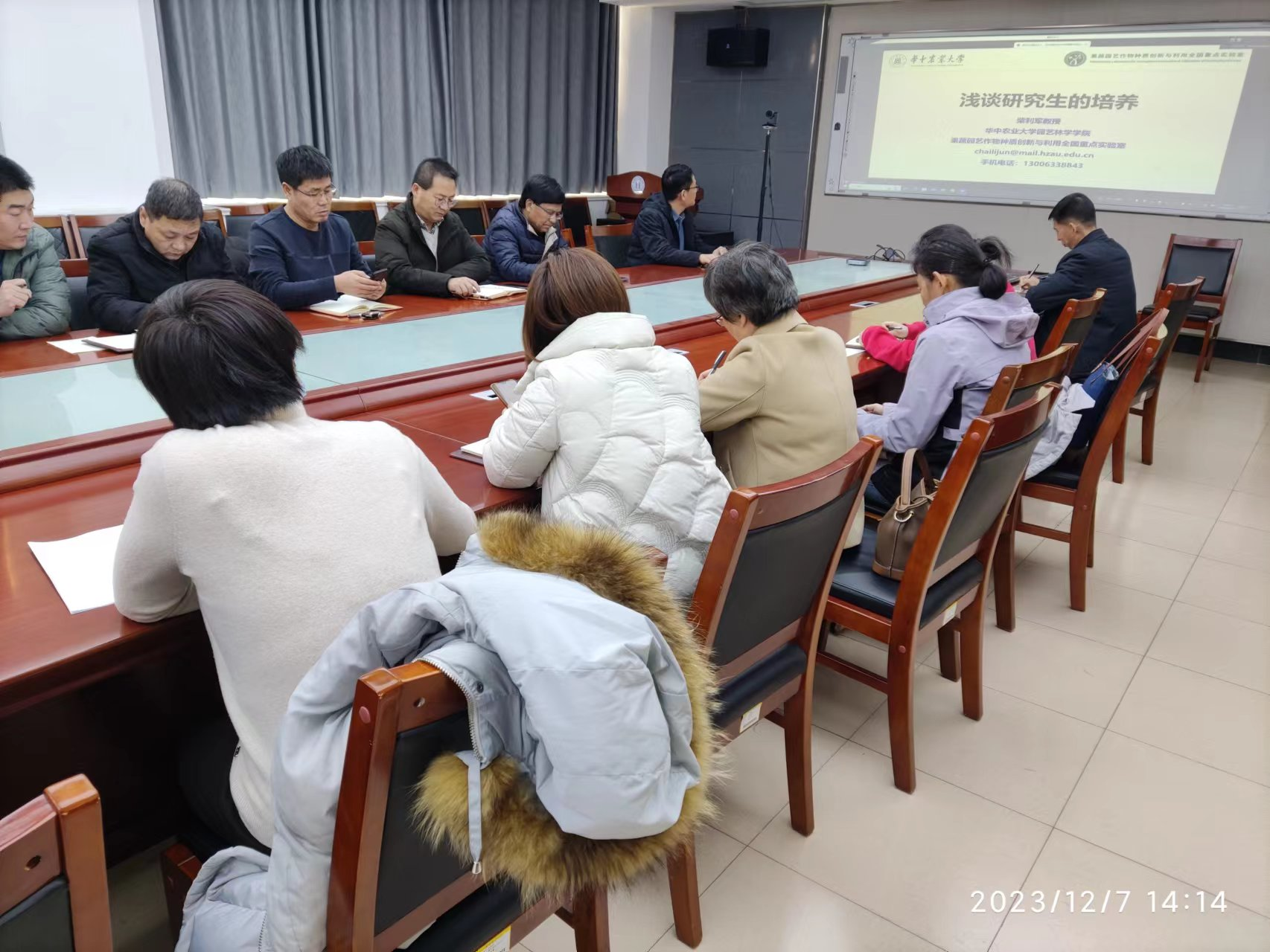 为了提升研究生导师专业素质能力,加强导师队伍建设,2023年12月7日,beat365亚洲体育官方网站举行研究生导师培训会议,邀请华中农业大学园艺林学学院柴利军教授与学院导师进行研究生培养经验的交流。会议由张新富副院长主持,学院研究生导师及青年教师参加了此次会议。