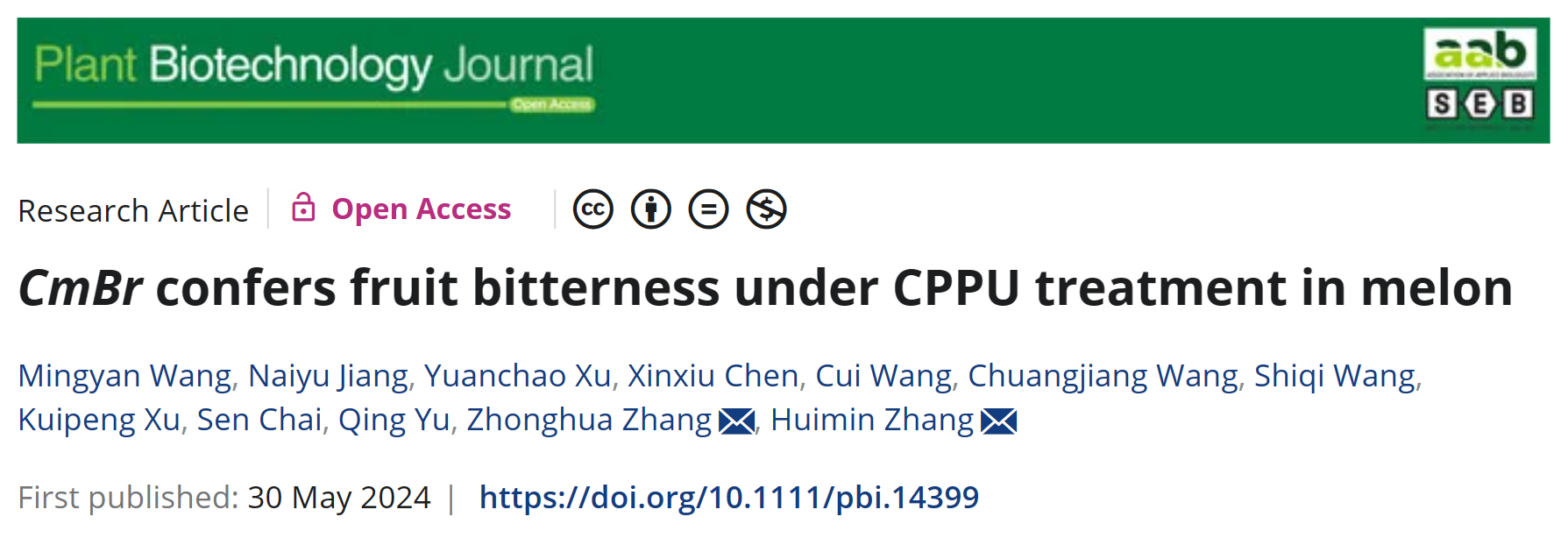 2024年5月30日,beat365亚洲体育官方网站张忠华/张慧敏团队在Plant Biotechnology Journal上在线发表了题为“CmBr confers fruit bitterness under CPPU treatment in melon”的研究论文,该研究揭示了CmBr响应CPPU导致甜瓜果实变苦的分子机制,并创制出甜瓜果实不苦的材料,为解决生产上果实容易出现苦味的产业问题提供了理论基础和育种材料。