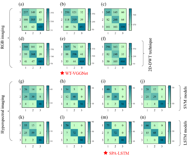 基于处理后的数据,团队构建了多种分类模型。在RGB图像分类中,运用ResNet18、VGG16、AlexNet等卷积神经网络(CNN)模型,其中WT-VGG16模型表现最佳,准确率达80.0%;在高光谱图像分类中,采用支持向量机(SVM)和长短期记忆网络(LSTM),发现SPA-LSTM模型准确率最高,达95.6%。这一成果不仅显著提升了茶小绿叶蝉危害监测的效率和准确性,还为后续害虫管理策略的制定提供了有力的数据支持。