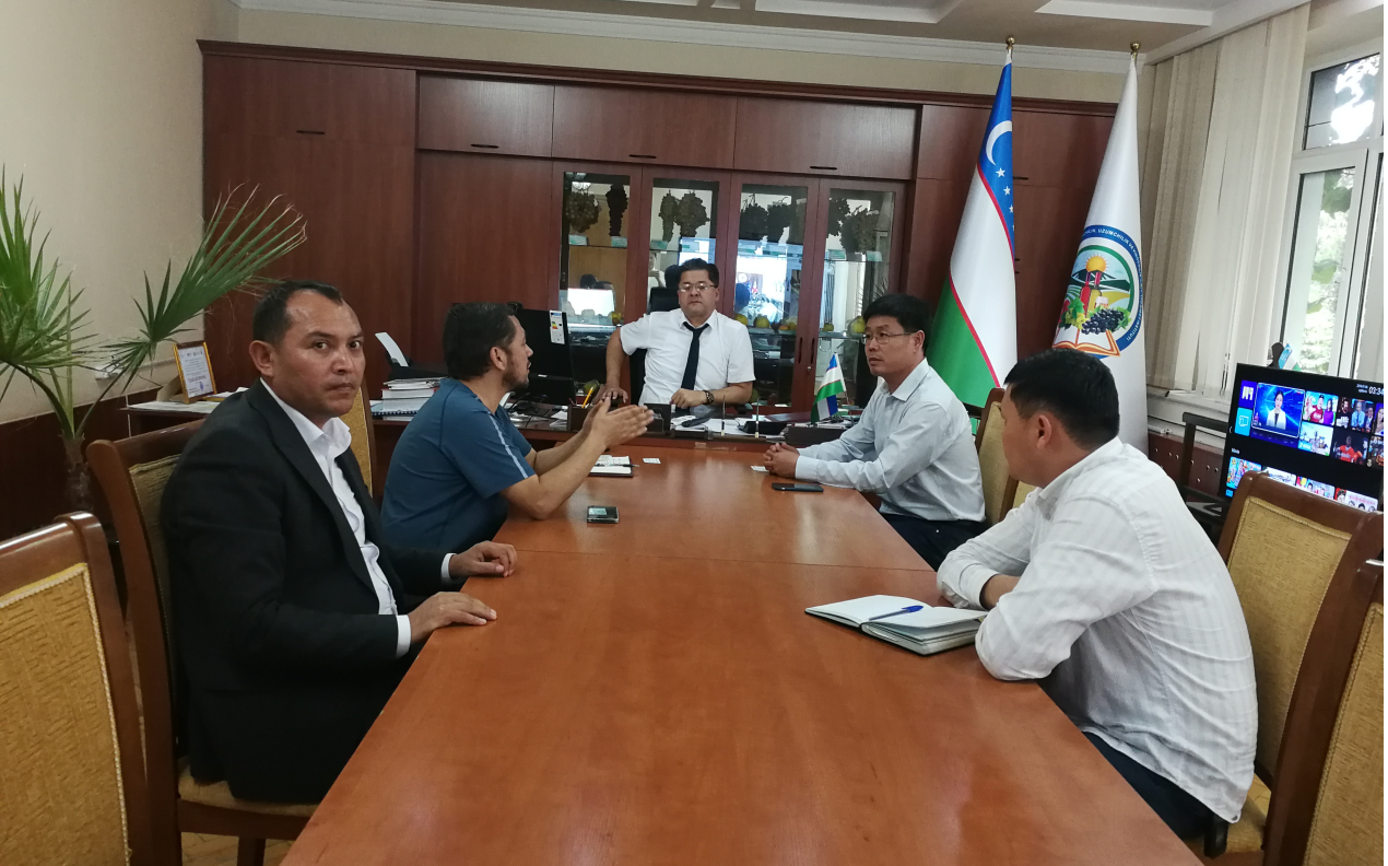 在乌兹别克斯坦科学院遗传学与植物实验生物学研究所,会见了所长纳里马诺夫·阿卜杜勒贾里尔(Narimanov Abdujalil)研究员。与副所长图拉库洛夫·胡尔希德研究员和研究所相关管理人员以及实验室科研人员就科研合作进行了座谈。