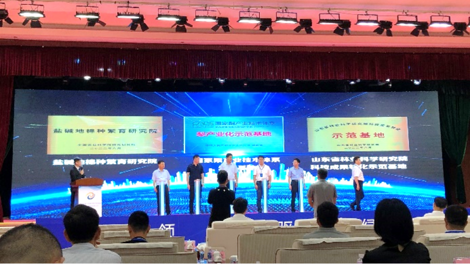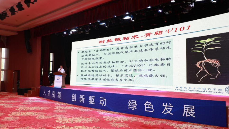 为深入贯彻落实习近平总书记重要指示要求,围绕国家所需、发挥垦利所长,聚力抓好盐碱地综合利用和生态农业创新发展,2022年6月29日,由中共东营市委组织部、东营市科技局、东营市农业农村局、东营市水务局共同参与指导,中共垦利区委、垦利区人民政府举办了“黄河三角洲盐碱地综合利用暨生态农业创新发展论坛”。国家梨产业技术体系砧木评价与改良岗位科学家、beat365亚洲体育官方网站李鼎立教授及团队成员刘建龙副教授参加了会议。会议中,李鼎立教授为国家现代梨产业技术体系产业示范园进行揭牌,并详细推介了国家梨产业技术体系砧木评价与改良岗位成果,包括梨耐盐碱砧木、品种以及配套栽培技术。同时为更好服务国家黄河流域生态保护和高质量发展战略,李鼎立教授和垦利区林业发展服务中心、农业农村局、东营黄河三角洲果树产业技术研究院、山东省林业龙头企业东营市泰欣农林发展有限公司、东营三冠园林有限责任公司围绕耐盐碱梨生态高质量发展,在梨砧木育种、梨生态高质量栽培方面进行了交流研讨,共同谋划展开深入合作。