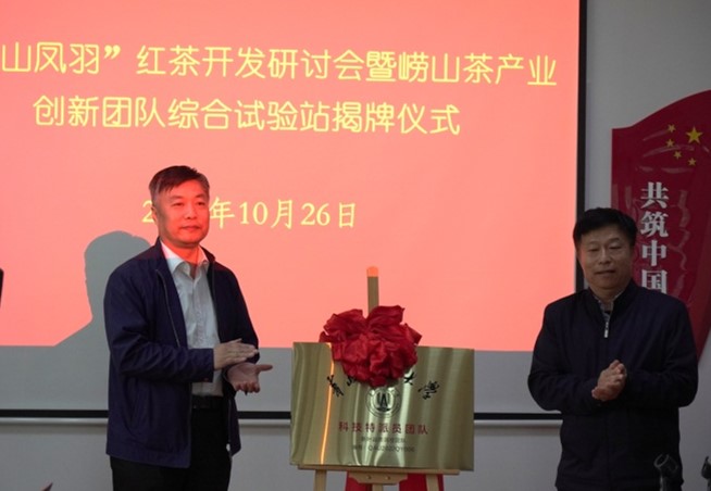 10月26日,“崂山凤羽”红茶开发研讨会暨崂山茶产业创新团队综合试验站揭牌仪式在青岛碧海蓝田生态农业有限公司举行,研讨会由崂山区农业综合服务中心主任吕爱军主持。中国海洋大学教授、青岛市茶叶学会理事长汪东风,青岛市农产品质量安全中心主任董国强,崂山区农业农村局、乡村振兴局局长王妮妮分别致辞。beat365亚洲体育官方网站社会合作处处长王珏,beat365亚洲体育官方网站党委书记隋成竹,青岛市农业技术推广中心研究员张云伟,青岛市农业技术推广中心研究员王漪,山东省科技特派员创新创业共同体崂山茶产业服务团、王哥庄街道办事处、青岛崂山茶协会、茶叶企业代表和崂山茶产业创新团队全体成员参加了本次活动。