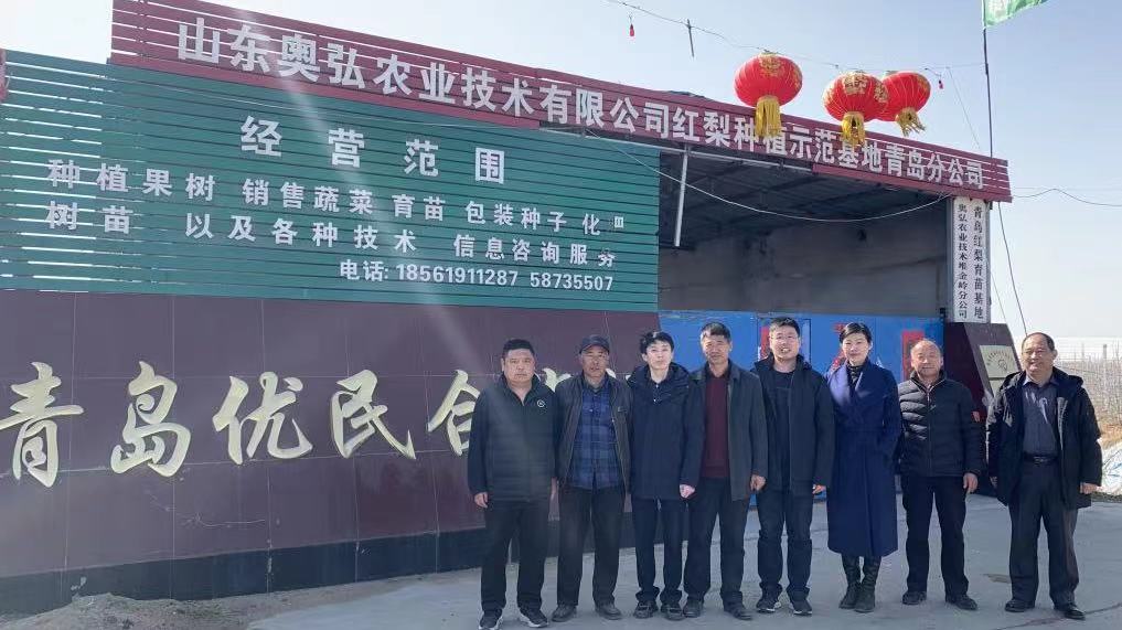 服务团先后到了莱西良种繁育场、青岛优民专业合作社、青岛东石洪海专业合作社等地进行生产指导。在莱西良种繁育场,大家参观了beat365亚洲体育官方网站苹果新品种苗圃园以及即将建设的新品种示范园。张玉刚教授对新品种示范园的建设提出了具体方案,对新品种的栽植标准、土壤条件以及多功能网室建设等都给出了合理化建议,李长友教授对春季幼苗如何起苗、果园病虫害防治进行了指导。