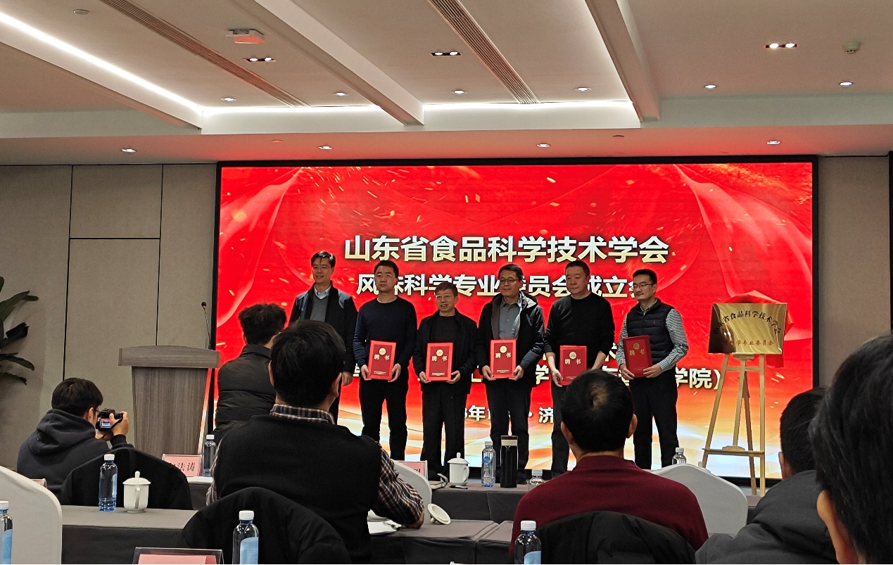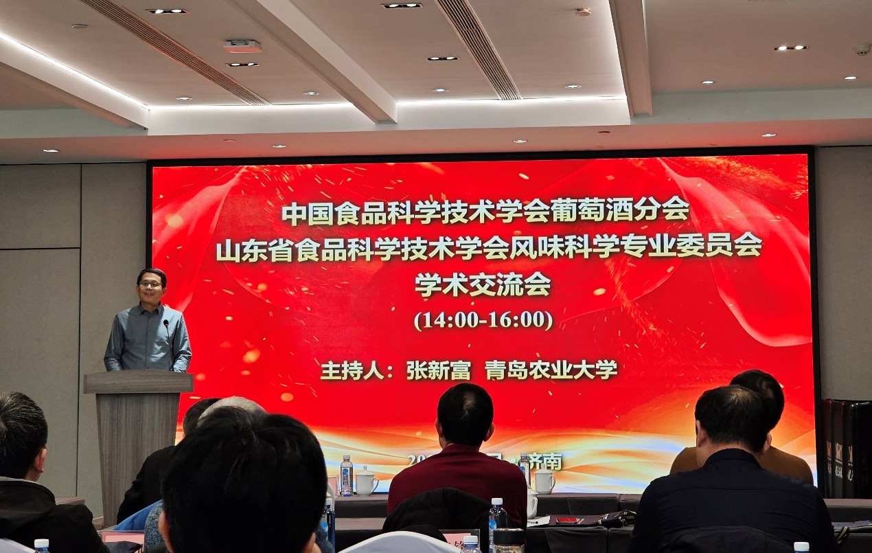 为促进风味科学理论与技术研究交流,开展协同创新与科普宣传,助力相关学科建设与人才培养,2023年12月22-24日,由山东省食品科学技术学会主办、齐鲁工业大学(山东省科学院)山东省食品科学技术学会风味科学专业委员会承办的中国食品科学技术学会葡萄酒分会、山东省食品科学技术学会风味科学专业委员会2023年学术交流会在山东济南隆重召开。beat365亚洲体育官方网站教师代表张新富、冷翔鹏、曲凤凤、任怡然参加了会议。
