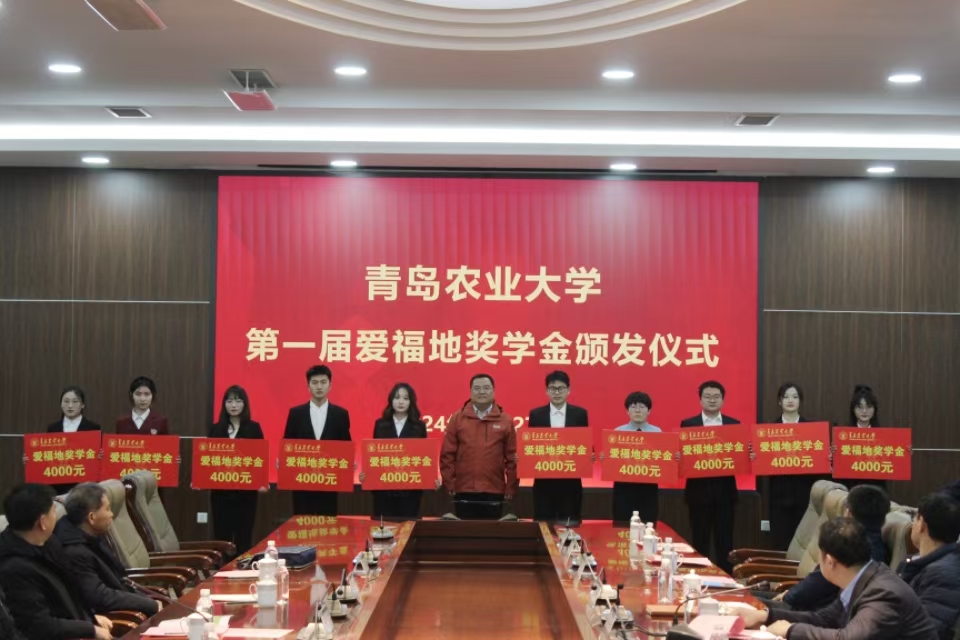 2024年,山东爱福地生物股份有限公司捐资100万元设立爱福地奖学基金。旨在鼓励beat365亚洲体育官方网站、农学院、资源与环境学院等学院学生勤奋学习、努力进取、全面发展,促进学院培养更多优秀人才。“爱福地奖学金”每年评选20位优秀学生,每人奖励4000元。