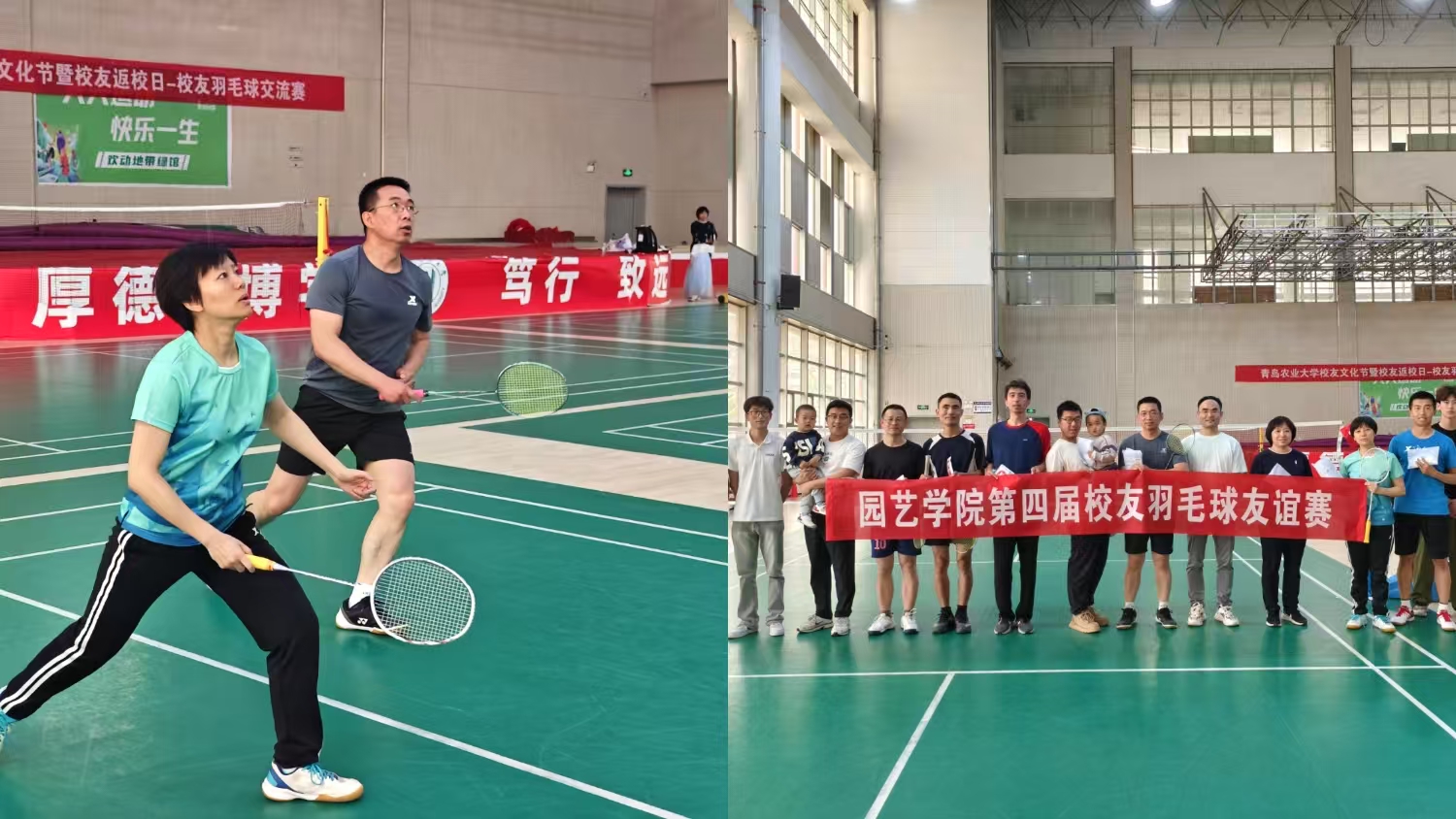 第四届校友羽毛球友谊赛在体育馆火热开赛,现场人声鼎沸,热闹非凡,球场上奔跑、跳跃、拼搏,校友们身姿矫健,球技高超,大家以球会友、以赛传情,挥汗如雨、活力四溢、热血依旧!经过激烈比拼,冠军队伍脱颖而出,这一刻,胜利的喜悦与对母校的深情交织在一起,成为返校日活动中一道亮丽的风景线。