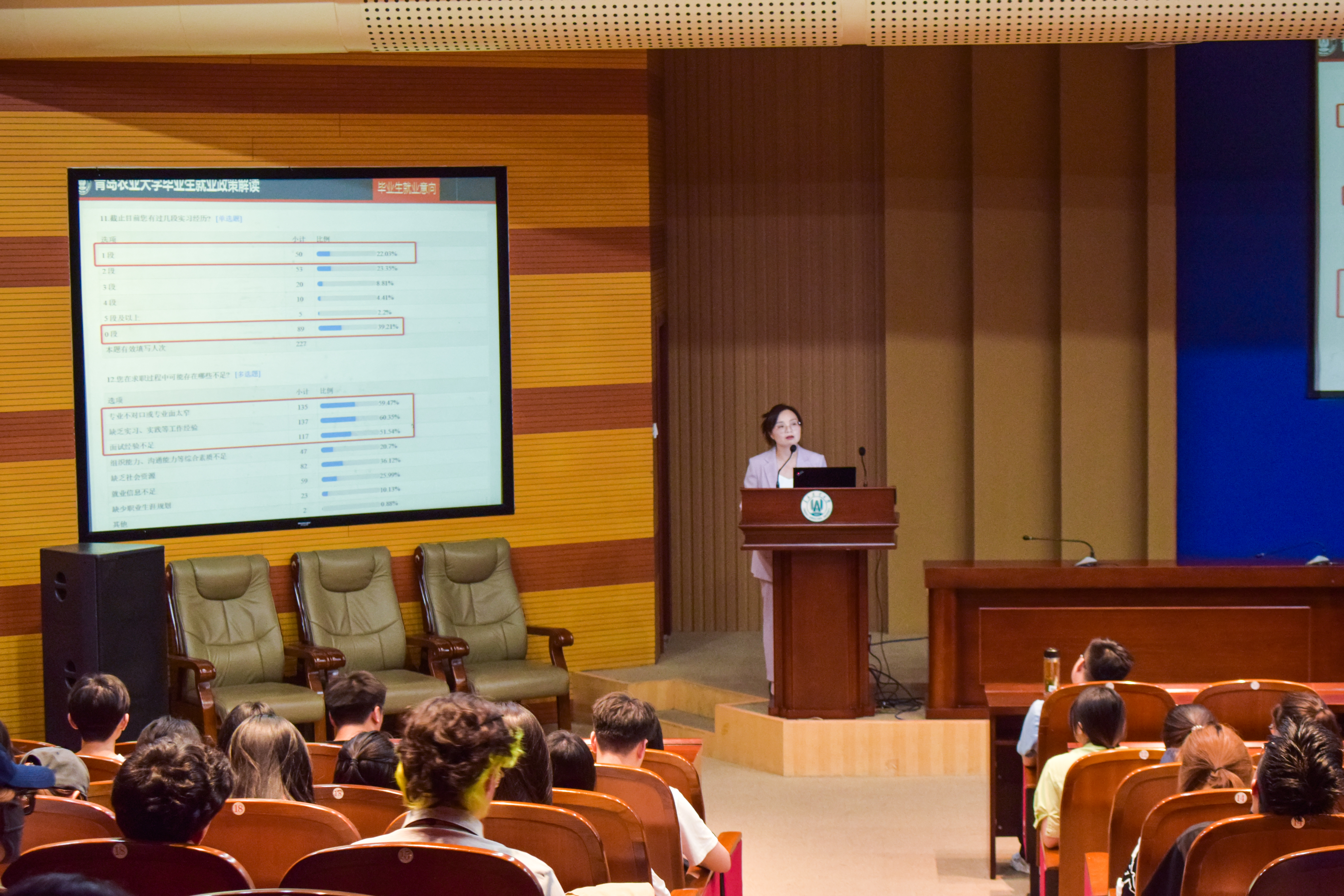 会上,吕国莹从就业趋势、就业意向、就业形势、考研形势以及需正确面对的几个问题等方面对毕业生就业、升学政策进行了详细解读,帮助同学们认清就业形势,树立正确的就业观念,积极择业就业,充分利用在校时间,为自身职业生涯做好长远规划。