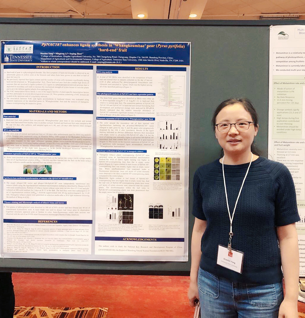 6. Li Mingtong, Cheng Chenxia, Zhang Xinfu, Zhou Suping, Wang Caihong, Ma Chunhui, Yang Shaolan*. PpNAC187 enhances lignin synthesis in ‘Whangkeumbae’ pear (Pyrus pyrifolia) ‘hard-end’ fruit. Molecules, 2019, 24, 4338; doi:10.3390/molecules24234338.